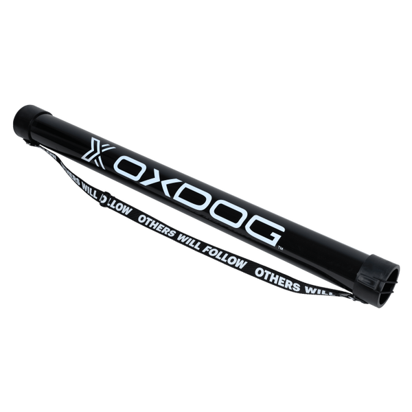 Die Ballsammelröhre ist mit Tragegurt und Haken zum aufhängen am Netz oder Zaun ausgestattet
