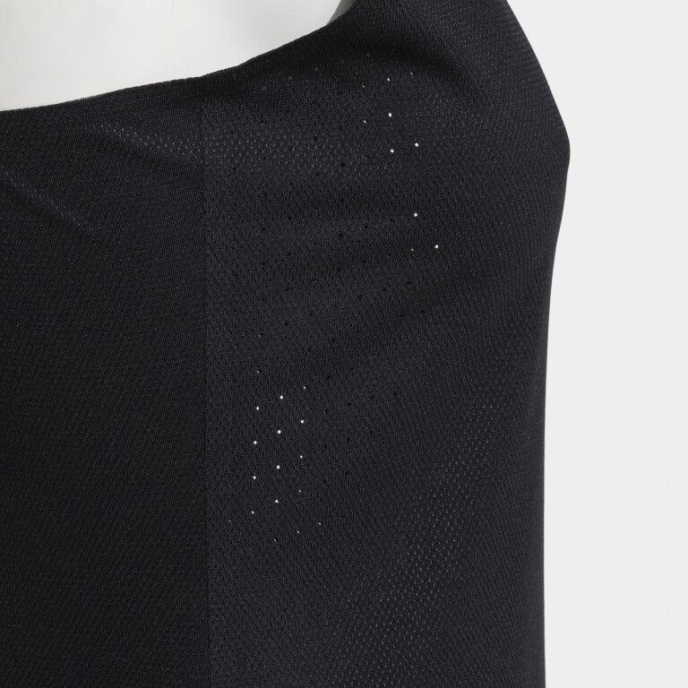 Es verfügt über einen Rundhalsausschnitt und ein Racerback-Design, um die Schulterblätter freizulegen und uneingeschränkte Bewegungsfreiheit zu ermöglichen. Alle Abschlüsse sind mit verschweißten Nähten versehen, um den Komfort zu erhöhen und Hautreizungen zu verhindern. Auf der Rückseite befinden sich Flachnähte mit dem gleichen Ziel.